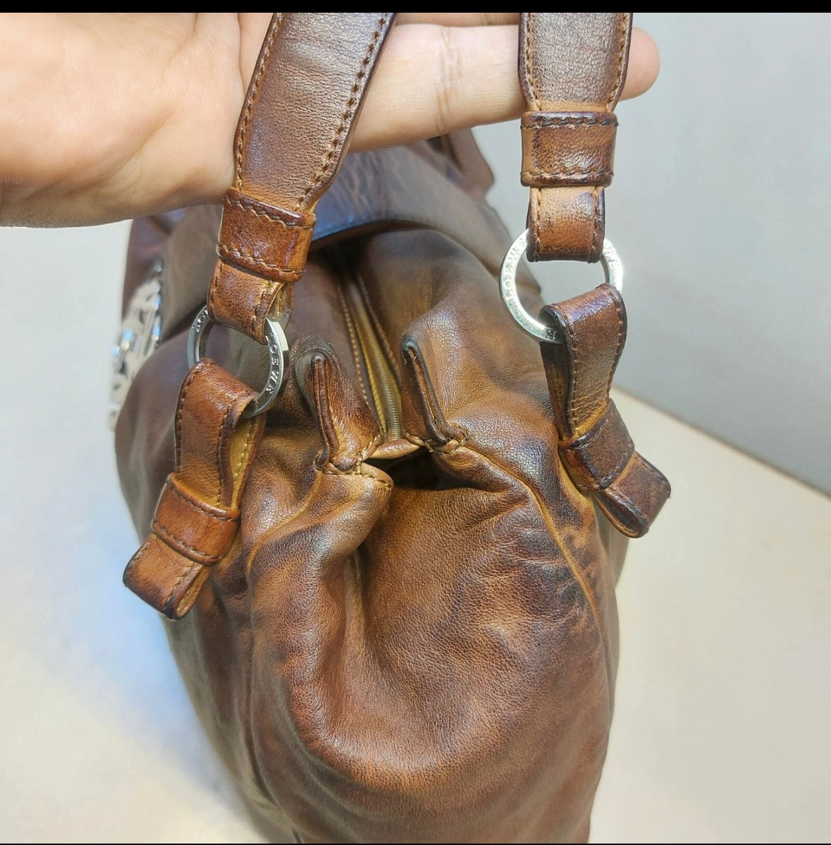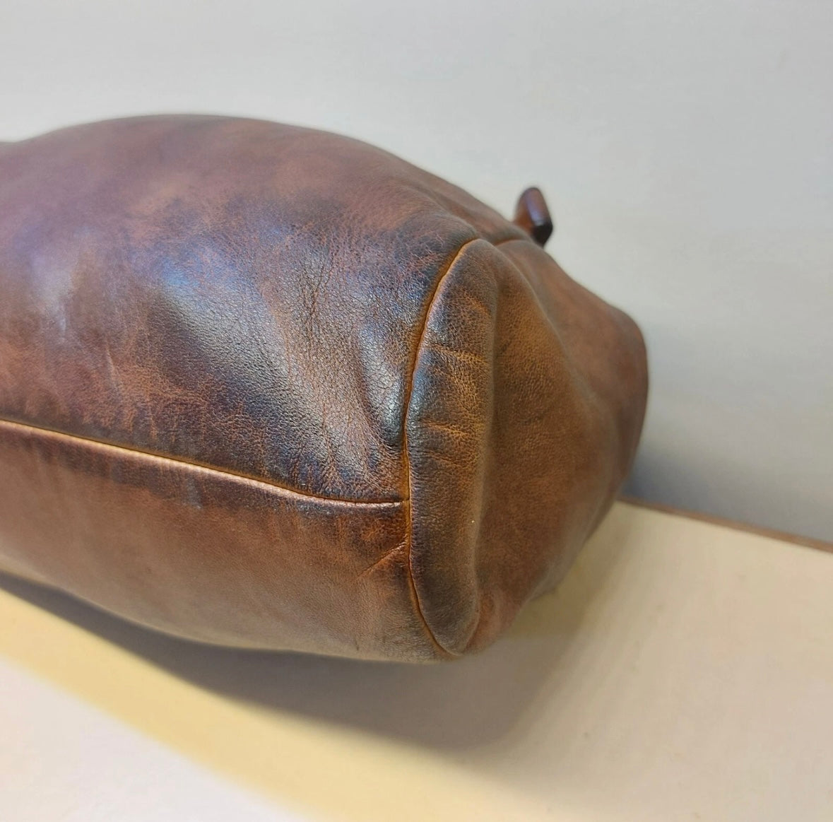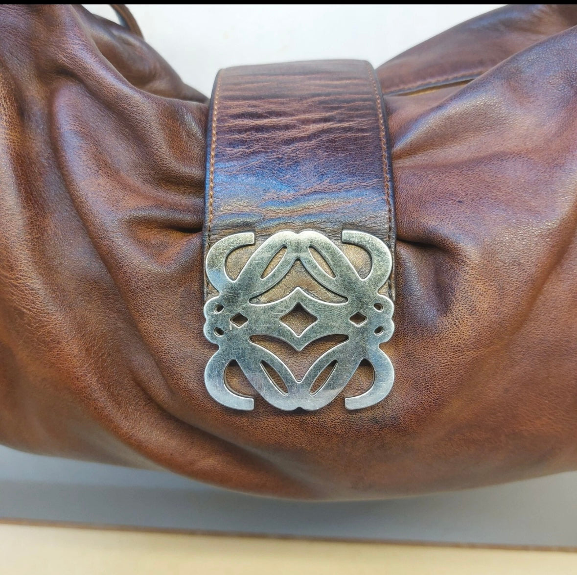 Elevate your collection with this authentic LOEWE Archive Shoulder Bag, a timeless piece crafted in supple two-tone leather. The rich brown leather with subtle black undertones develops a natural patina over time, giving each bag a unique character.