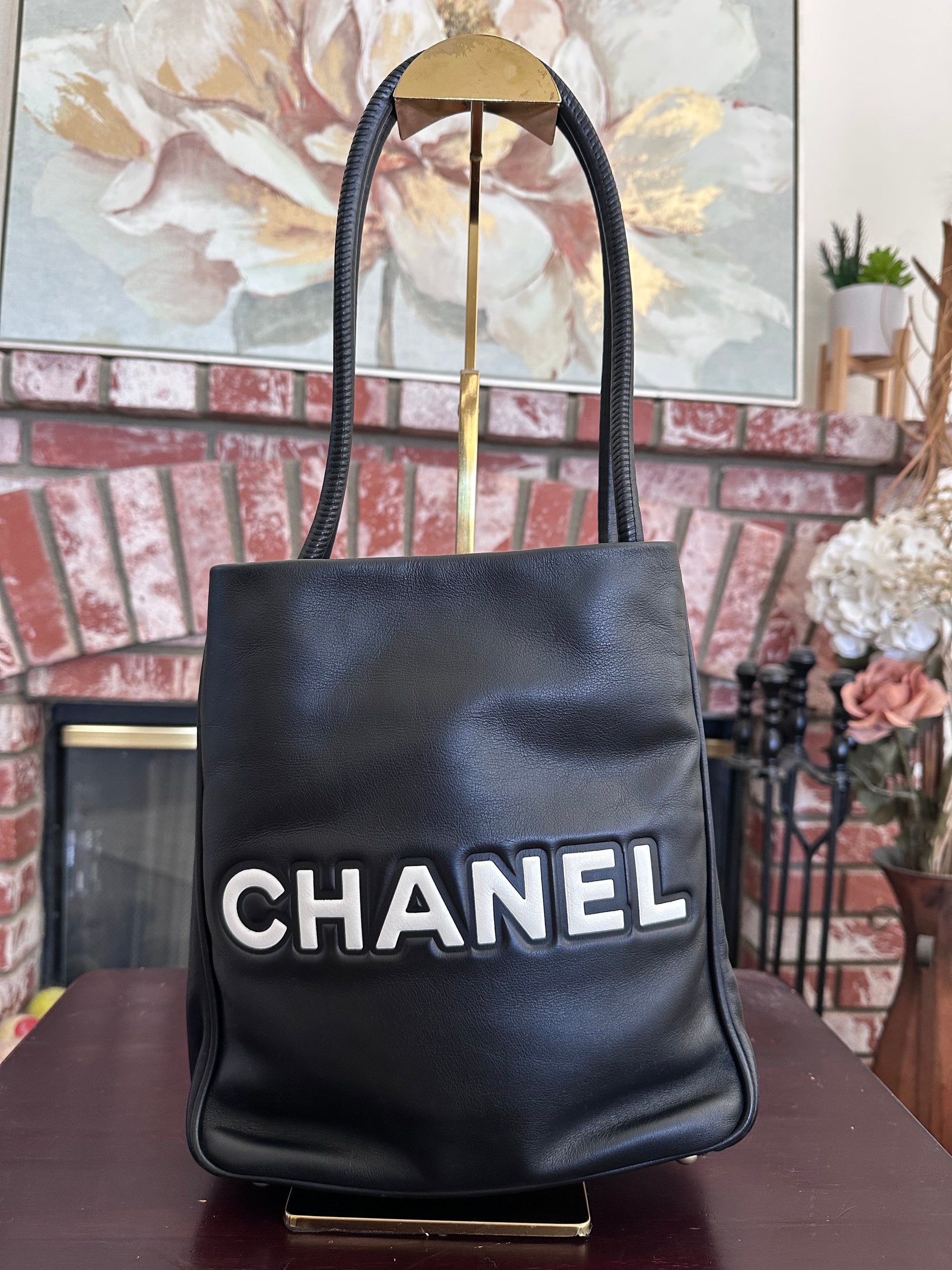 - Back: Oversized CHANEL logo in white